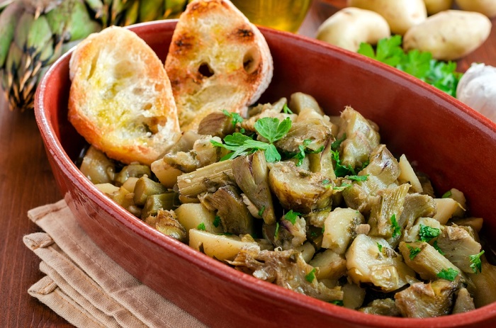 Αγκινάρες με πατάτες και κολοκυθάκια στο φούρνο